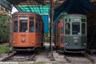1941 | Vigevano (PV) - Motrici a carrelli 1941 & 1524 della collezione privata dell'Ing.Bruno Maccari. Le vicissitudini di questo processo di salvaguardia trovano origine nel 1985. Due motrici a carrelli serie 1500, tra cui l’ultima superstite con trazione regolata dall’avviamento APN, sono state salvate da demolizione certa e sottoposte a meticolosi interventi di restauro. Grazie al preziosissimo operato svolto dall’Ing. Bruno Maccari è stato così possibile salvare e salvaguardare le vetture 1524 e 1941 che giacciono ancora meticolosamente protette nelle campagne di Vigevano (PV), a pochi chilometri da Milano. Entrambe le vetture sono ancora operative, la marcia viene difatti garantita, mediante asta di captazione, da un sistema progettato nei dettagli dallo stesso proprietario. (by Passione Trasporti) | ![]() |